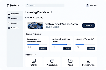 You don’t just purchase a board — you experience how technology truly works.At Tektork, every kit and lab solution comes with complete learning support: immersive video tutorials, engineered manuals, and expert-built presentations that empower students to design, develop, and deploy real, production-ready engineering projects with confidence.